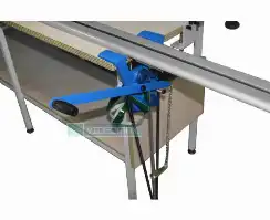 Снабжена дисковым раскройным ножом, который перемещается по длине линейки вручную, с помощью специальной штанги